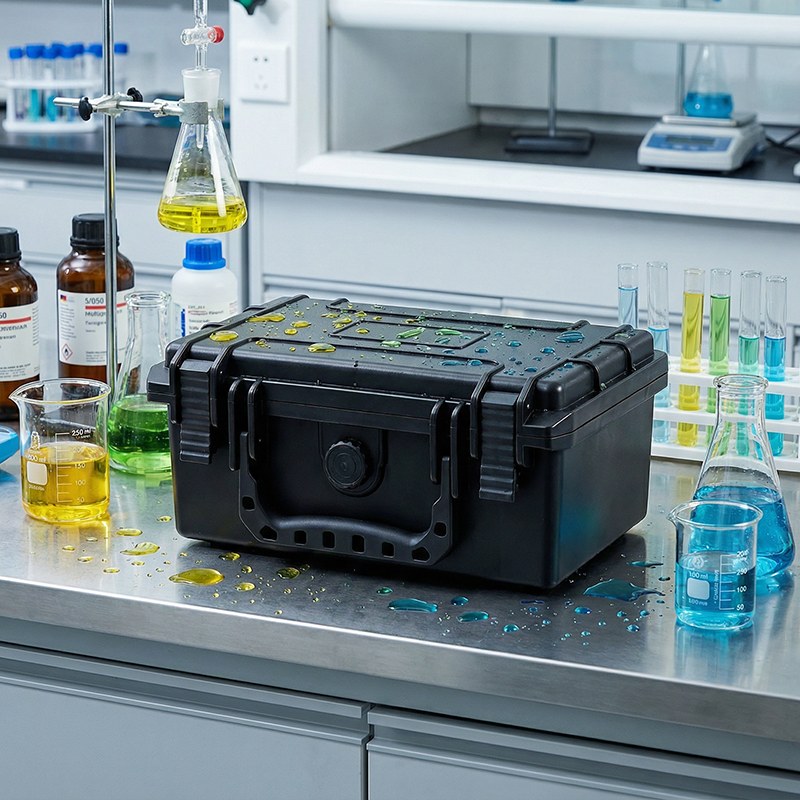 标准气压平衡阀:这是该模型的标志性特征。航空运输或海拔变化后,完全密封的盒子内部会产生负压,导致打开极其困难,甚至损坏锁扣。我们的9英寸手持式硬箱配备压力平衡阀,可以调节内外压差,确保您的设备无论运往全球何处都可以立即轻松访问,确保运营效率。 增强型耐化学腐蚀材料:我们为9英寸手持硬壳特地选择了更高品质的材料配方,赋予PP材料优异的耐油脂、弱酸碱和部分溶剂的性能。这意味着当在修理车间、实验室或化工厂使用时,盒子表面可以抵抗常见化学品的飞溅,不易渗透或脆化,并且使用寿命比普通塑料盒子长得多,大大降低您的长期采购和更换成本。 工艺保证:该型号箱体采用高精度模具和稳定的注塑工艺成型,保证压力平衡阀安装位置的绝对密封,是阀门有效发挥功能的基础。我们对每批原材料进行来料检验,确保其耐化学性符合配方标准。 验证测试:除了标准的IP67防水防尘测试外,我们还会对成品样品进行模拟化学环境测试(如油浸、盐雾),并反复进行高低温循环下的启闭测试,以验证阀门和材料在极端条件下的长期可靠性。