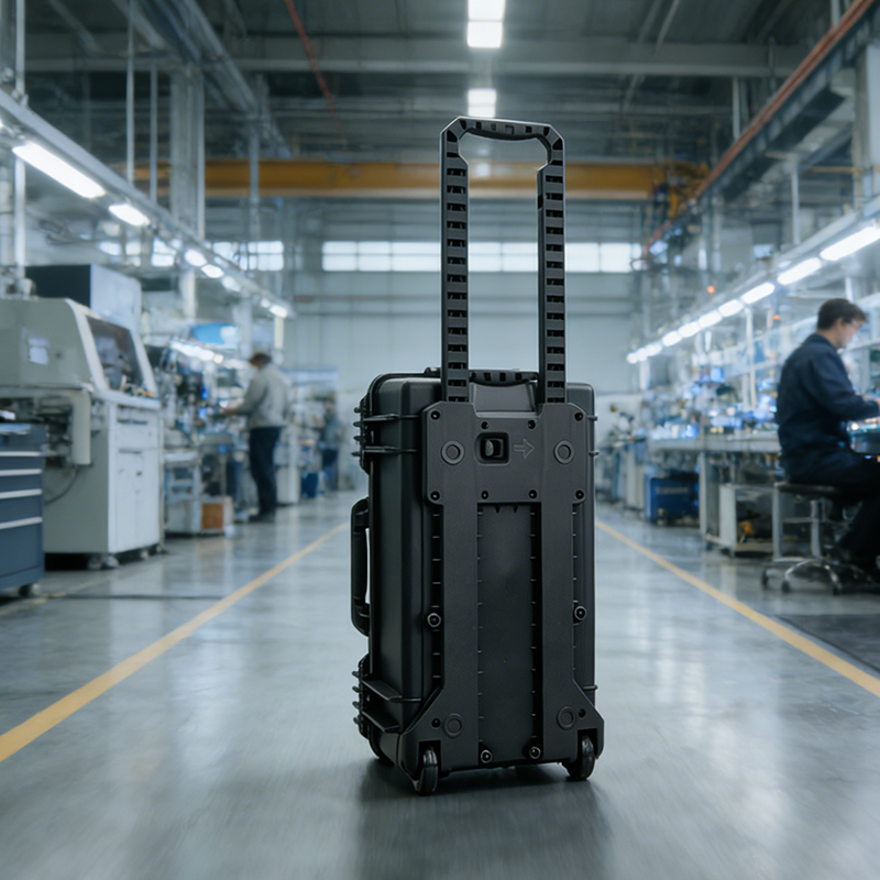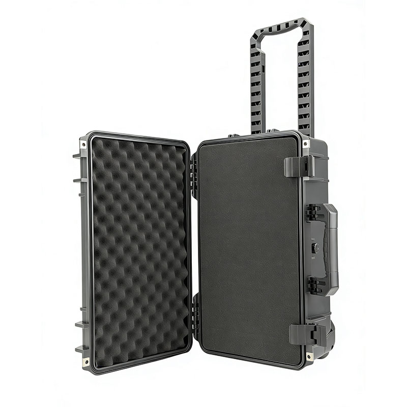Q1:装满重型工具后,这款行李箱的把手和轮子可靠吗?A1:当然。该移动系统专为重型专业用途而设计,而不仅仅是普通的旅行箱。手柄采用加厚PP材质,铰链加固;轮子采用高负荷工业轴承和耐磨橡胶。整个系统在设计阶段就经过了远远超过日常使用强度的动态负载疲劳测试,确保其能够长时间承受建议的最大负载。 Q2:内部空间这么大,如何有效整理设备,防止运输过程中发生碰撞?A2:这正是我们提供模块化空间规划系统的原因。我们强烈建议根据您的固定设备清单购买定制的泡沫衬里;这是实现最高级别保护的最佳方式。对于经常更换设备的用户,可将可调节的隔板、工具板和各种尺寸的储物袋组合起来,灵活地创建分区,确保所有物品都牢固地固定到位。 Q3:这个尺寸可以作为托运行李带上飞机吗?A3:本产品的外部尺寸经过精心设计,基本符合大多数航空公司的托运行李尺寸规定。然而,具体规定因航空公司而异。我们强烈建议您在出行前与运营航空公司确认最新的行李尺寸和重量限制。 Q4:行李箱长时间拖拉后,会因震动而导致密封性下降吗?A4:不需要。我们的密封系统专门针对动态使用场景进行了优化。密封条沟槽的深度和宽度宽大,密封条本身具有优良的抗永久变形和抗疲劳能力。即使行李箱在颠簸路面经受长时间震动,其宽阔的密封接触面仍能保持紧密密封,确保IP67防护等级的持久耐用。