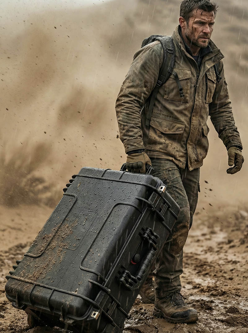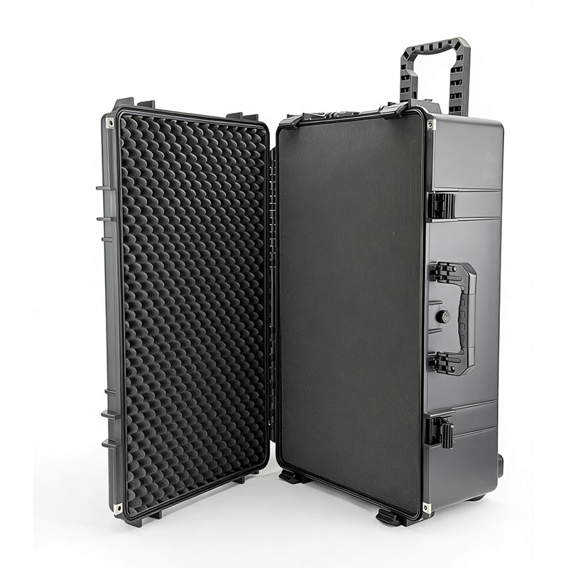 大容量、坚固结构:体积是根本,坚固是灵魂。我们采用加厚的柜壁,确保柜体在满载(建议负载60-70公斤)的情况下不会扭曲或鼓起,保持几何稳定性,保护内部精密设备。所有受力点,如拉杆座、轮轴安装座、闩锁周围均进行了局部加厚。 工业级移动和操纵系统:移动如此重型的保护箱需要真正的工业设计。我们为其配备了可伸缩拉杆系统,牵引力更稳定;四个大直径、配备轴承的车轮位于拉杆下方,可确保斜坡上或车内静止时的安全。该系统允许一个人轻松操纵近 100 公斤的负载,就像在平地上移动普通手提箱一样灵活。 使用场景:这款威硕大尺寸拉杆硬箱是以下大规模、高价值作业的基石设备:高端电影制作:可容纳多个服务器、监视器阵列和存储设备。大型活动广播:运输完整的便携式视频切换器、音频接口、光纤传输设备和备用电缆。工业级现场维修:携带用于维修风力涡轮机和发电机等大型机械的专用重型工具、液压设备和测量仪器。科考及应急救援指挥部:作为野外实验室或一线指挥通讯中心,集通讯设备、发电机、检测仪器、应急物资等为一体。高端设备租赁:以“一站式解决方案”的方式向客户出租,包括一整套即用型专业设备。