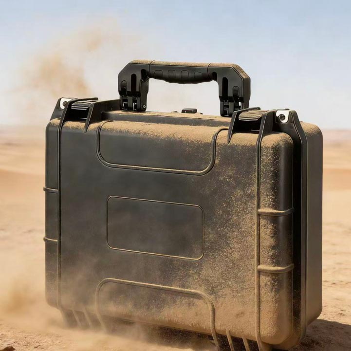 专业的沙尘暴守护者宁波威硕防风沙尘户外硬箱经过精心设计,可承受地球上最极端的多尘环境。在沙漠勘探、戈壁施工、采矿作业、建筑工地等灰尘较多的场所,普通防护箱往往会在短时间内因沙粒侵入而损坏,损坏内部设备。我们的产品通过创新的防尘设计和专门的材料工艺,达到了最高的IP6X防尘等级。它可以承受长时间的沙尘侵蚀,确保您的宝贵设备和工具即使在最恶劣的环境下也能保持原始状态。